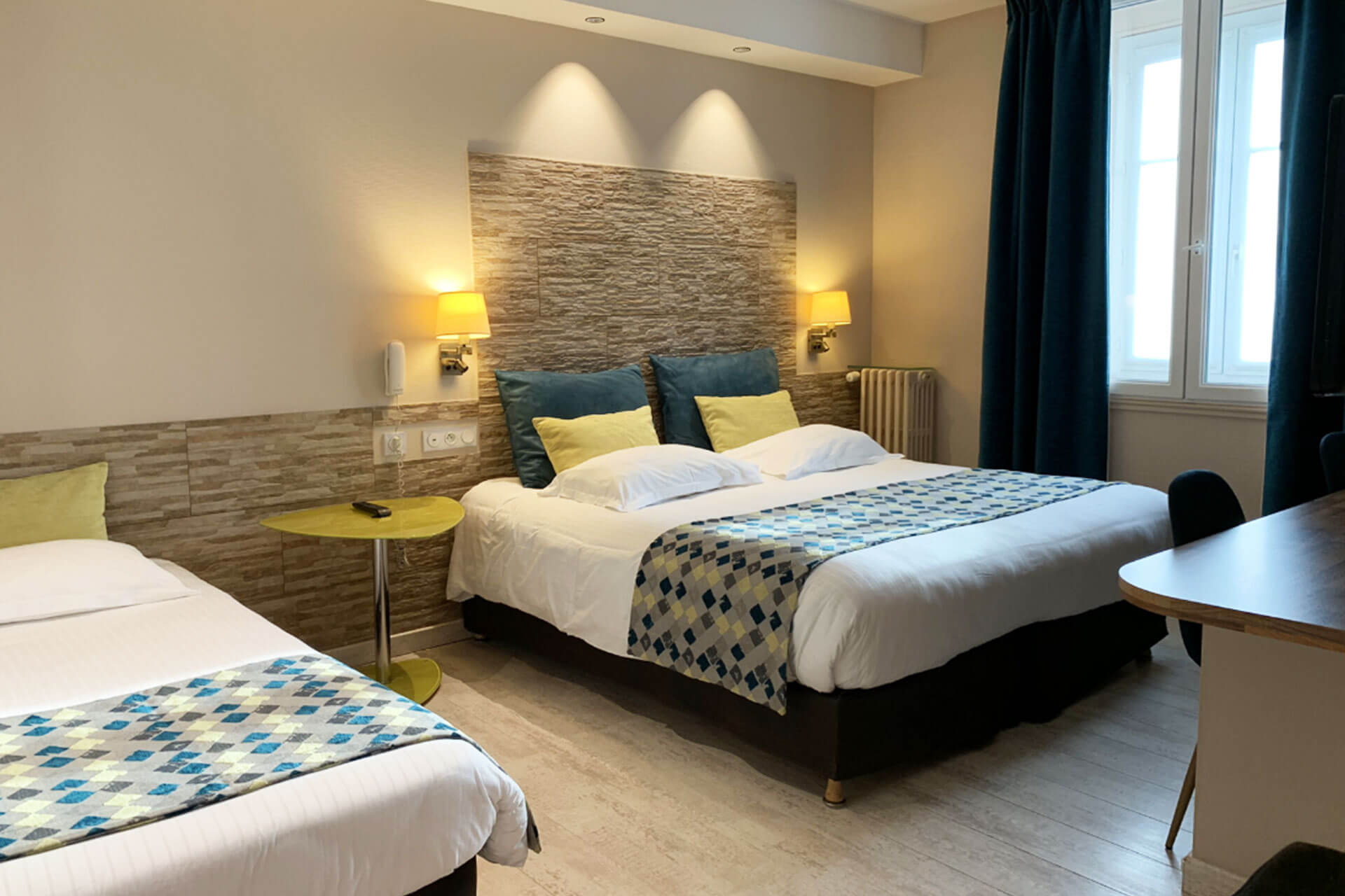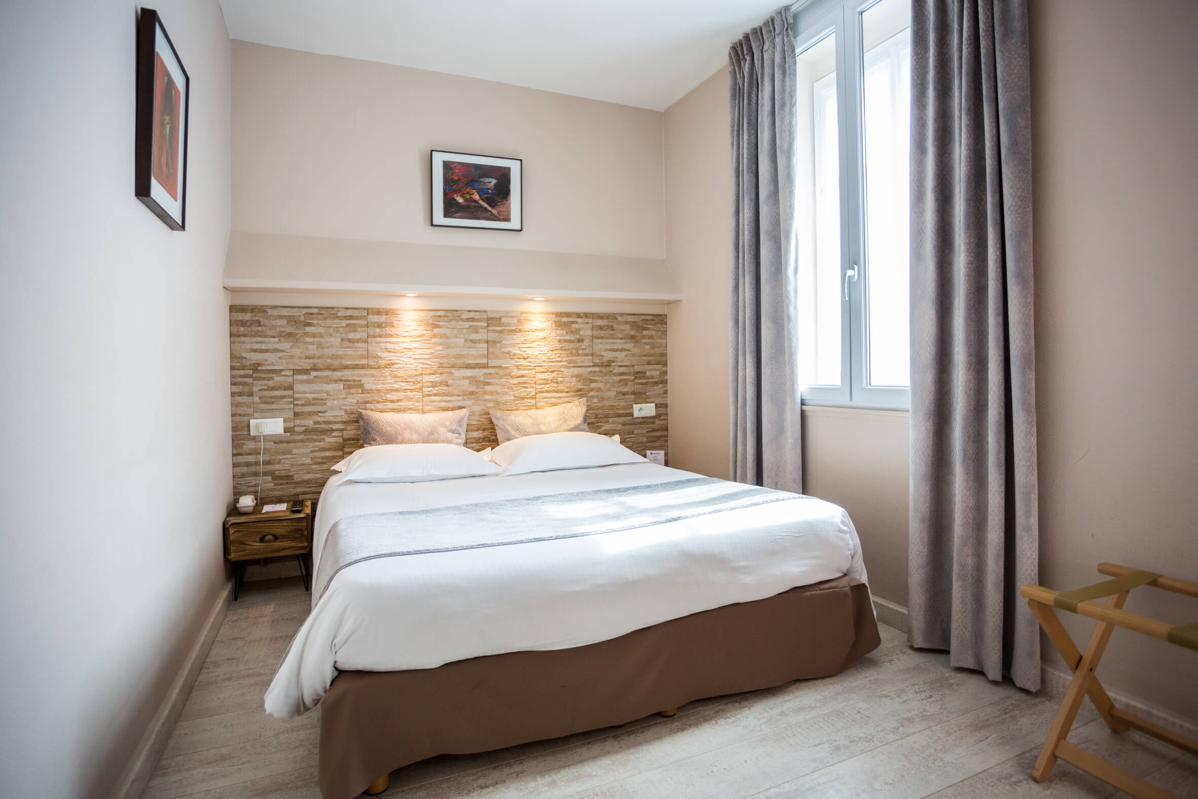 Des pierres apparentes, un beau plancher, voilà l'univers nature et cosy de notre chambre standard. Dans une ambiance moderne et tout confort, nos chambres Standard vous invitent à la détente après vos longues journées d'excursions, de travail ou de farniente. Vous y trouverez une literie de qualité ainsi qu'une large palette de services et de commodités.